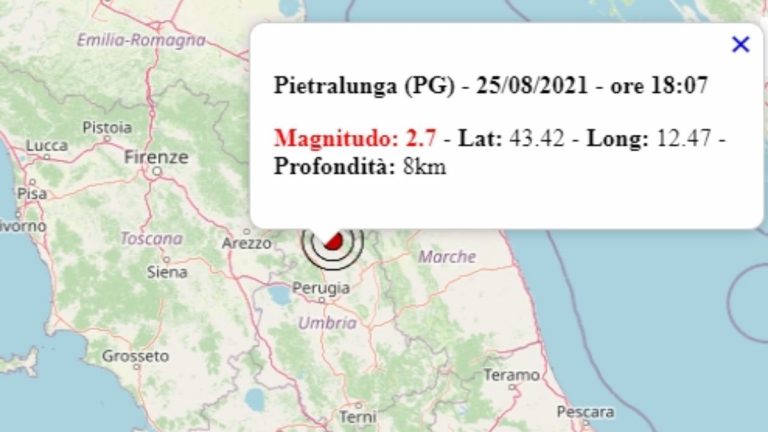 Terremoto In Umbria Oggi 25 Agosto 2021 Scossa M 2 7 In Provincia Di Perugia Dati Ingv
